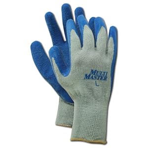 Category: Industrial & Scientific Vendor: Blue latex palm/finger coating Grey cotton/polyester shell Knitted wrist cuff Rough grip
