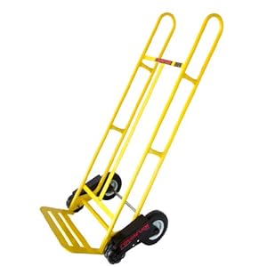 Product Description : Rotatruck's award-winning Self Supporting Hand Truck (patent pending) offers operators both immediate and longer-term benefits. Not only does it reduce the effort required, it reduces the repetition and duration of many activities associated with the use of hand trucks. Fully supports the load in a reclined operating position, removing the need to balance it. Allows negotiation of obstructions, single steps and curbs without the need to reverse. Levers load up a curb with much less force than with traditional hand trucks using a more ergonomic posture. Reduces the pull-back effort required to change from an upright to operating position. Allows loading to be completed in the operating position, removing the need to pull back heavy loads. Frees up hands to open doors without parking or balancing the load. Increased load stability means less chance of load spillage and stock spoilage. Rotational and lateral (direct sideways) maneuverability makes it easier to handle loads in confined spaces such as elevators, corridors and storerooms. Excellent tracking characteristics, even across inclines. Powder-coated steel frame construction. 4 Corrosion-resistant full polymer wheel. Two 5" Diameter and two 8" diameter fixed triple wheels. Toe measures 18 width by 9" depth. Measures 22" width by 54" height by 22-51/64" depth.