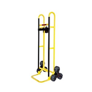 Product Description : The Rotatruck stair climbing hand truck provides unrivalled maneuverability where you need it most. It allows users to transport heavy or awkward loads up and down stairs with greater safety, control, confidence and reduced risk of damage to property. Engineered for use in most environments including transport and logistics, furniture and appliance removals, office, retail and general warehouse. Rotatruck stair climbing mount assemblies can also be fitted to other mobile industrial equipment that may benefit from improved maneuverability or the need to negotiate steps. Some of our customers' applications include mobile cooking oil filtration units, carpet cleaners and soda blasters. Direct tracking capability and improved steering control. 360 degree movement provides easy rotational and direct lateral (sideways) maneuverability without causing damage to floors. Easy repositioning of the load laterally across the width of a stair to safely negotiate stairs, landings and other confined spaces. Small wheel base enables full 4 wheel support on most steps, allowing you to take a rest and greatly reduces the risk of a runaway load. Designed to clear stair nosings avoiding damage to stairs. No flat tires. Nylon molded wheel-mount-shrouds protect doors, walls and stair nosings from accidental damage. Safety Ratchet Strap and ribbed Rail Buffers provide greater load support and security. Nylon axle bushings give a smoother and quieter ride. Non-marking polyurethane rollers. Note: Not suitable for all open riser stairs. Toe measures 15-19/32 width by 8-19/64" depth. Measures 24" width by 54-1/2" height by 21-3/16" depth
