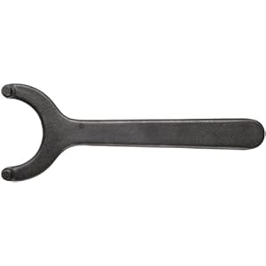 Product Description : Precision forged and thru hardened. Fixed pin fits a single collar or locknut. Precision ground pins. Made of American high carbon steel. Black industrial finish. Made in U.S.A. 2-3/4" Center distance pins face spanner. 2-9/32" Span of jaws in clear. Pin measures 9/32" diameter by 9/32" length. Measures 8" length by 1/4" thick.