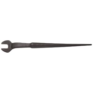 Product Description : Structural wrench heads are offset from handle to permit clearance of obstructions. Handles are tapered to align bolt holes. Open end for easy engagement. Often called "Open Spud Wrench". Made of forged alloy steel. Industrial black finish. Made in U.S.A.1" Wrench opening. Head measures 2" diameter by 17/32" thick, 14-1/2" Length,15?16" Handle at head, 1-7?8" Offset at end.