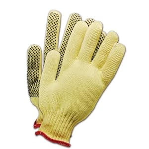 Category: Industrial & Scientific Vendor: Medium-weight Kevlar/cotton blend Plastic dots on single side ANSI cut level 2 protection Color-coded overedge Rubber band wris