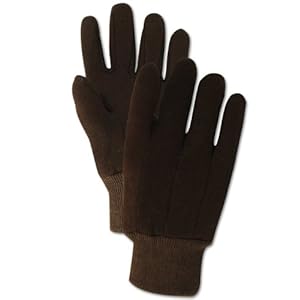 Vendor: 9 oz cotton/polyester blend jersey glove Soft knit wrist cuff Comfortable clute pattern Brown color effectively hides dirt Men'