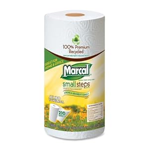 Product Description : Marcal Small Steps 100% Premium Recycled Jumbo 2-Ply Roll Towels contain 60% post consumer recycled content making them the perfect choice. Big Clean Ups need a Big Roll and this is our biggest roll yet. The 210 full size sheets are strong, absorbent and virtually lint free. Whitened without chlorine bleaching and have no added dyes or fragrances. Perfect for home or office use. 210 sheets per individually wrapped roll, 12 rolls per carton. Made in the USA. Marcal, a friend to trees since 1950. We make paper from paper, not from trees!